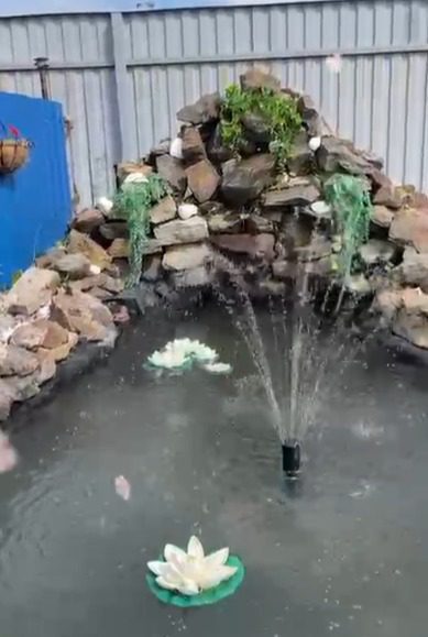 и мини-водопадом. Летом он становится настоящим центром притяжения для всех, кто заглянет во двор. Оно и понятно: журчание стекающей по камням воды создаёт атмосферу покоя и общей гармонии. А вечером – это и вовсе волшебное восприятие действительности: отражающиеся в воде светящиеся огоньки гирлянд превращают двор в волшебный сказочный уголок из детских сказок.