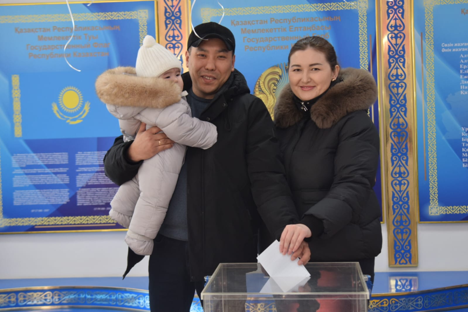 Молодая семья Айнура и Казбек Уразбаевы впервые вместе проголосовали на избирательном участке